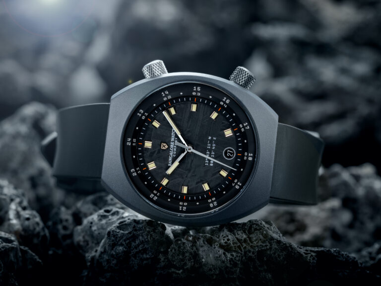 The Visitor is housed in a case crafted from Cerasteel™, Bangalore Watch Company’s proprietary material that blends high-grade steel with an advanced ceramic coating for strength and refinement. The watch is powered by a highly accurate Swiss Automatic movement, water resistant up to 100M, and designed for everyday wear. The watches are manufactured with the highest standards of Swiss timekeeping with the brand’s in-house watchmakers in Bangalore. The Visitor is a fragment of cosmic history, to carry on the wrist.