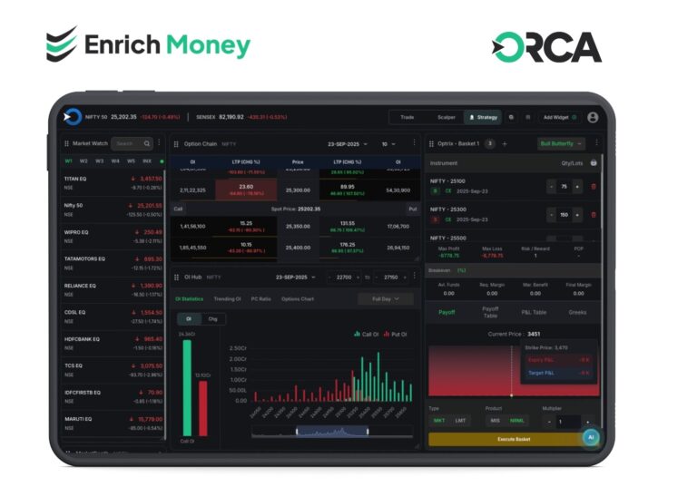 Beyond options, TradeMode integrates seamlessly with Orca, Enrich Money’s all-in-one investment platform that brings together equities, F&O, commodities, ETFs, bonds, IPOs, and mutual funds under a single framework. This integration underscores Enrich Money’s vision of unifying research, risk analysis, and execution tools within a comprehensive, web-native ecosystem.