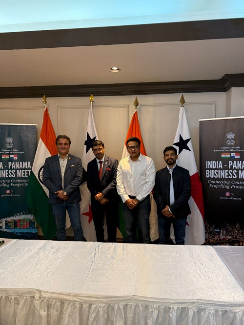 Krupesh Bhat CEO Melento with Dr. Sumit Seth – Indias Ambassador to Panama, Costa Rica & Nicaragua and Alcibiades Broce Jan, President & CEO of X Financial Reports, at the partnership signing ceremony in Panama