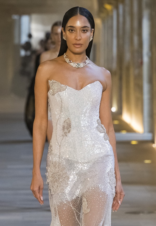 The show celebrated the romance of natural diamonds and artisanal finesse, brought to life through bold silhouettes and an intricate design language. The collection featured an exquisite assortment of precious and semi-precious gemstones – from the rare luminosity of orange sapphires and the velvety richness of tanzanite to the vivid intensity of large emeralds, the fervent fire of rubies, and the radiant brilliance of tourmalines. Accents of citrine, aquamarine, tsavorite, malachite, and amethyst added further depth, with each gemstone handpicked for its exceptional beauty and thoughtfully composed into patterns that were both distinguished and innovative. Only 5% of natural diamonds worldwide meet the exceptional standards required for this selection. These rarest of the rare diamonds are meticulously chosen for their flawless symmetry and precision cuts, delivering a radiance that elevates every ensemble into a statement of excellence and craftsmanship. These stones were masterfully crafted into bold, evocative silhouettes that paid tribute to wearable art.